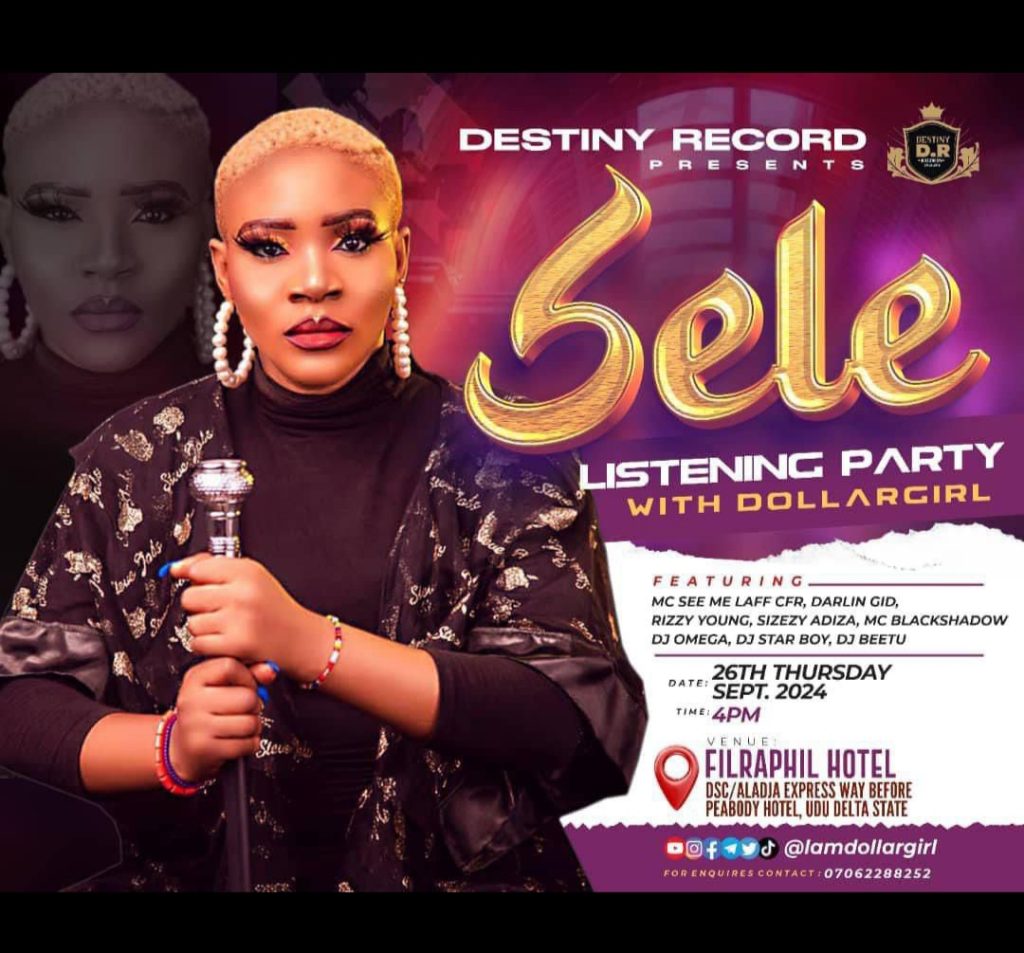 Fast rising female musical artiste, Dollar Girl is thrilled to announce the release of her brand-new album, SELE. This album will be made available on September 26, 2024 at Filraphil Hotel, express Junction, along DSC Express, and thereafter, on all social media platforms.